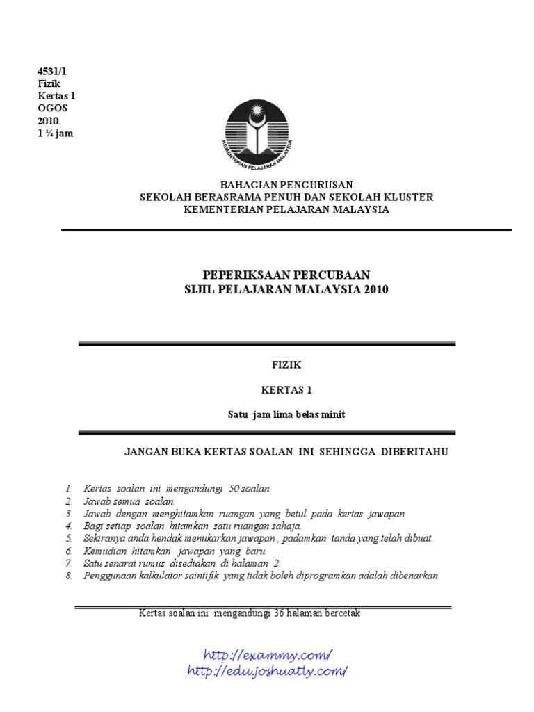 Koleksi Soalan Percubaan Spm 2016 (trial Examination Papers) via panduanmalaysia.blogspot.com
